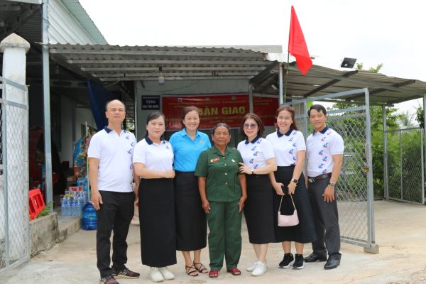 Đại diện Cấp uỷ – Đoàn thể – Lãnh đạo Trường trao Nhà Tình nghĩa cho hộ Đồng chí Lâm Xê – Thị Bình