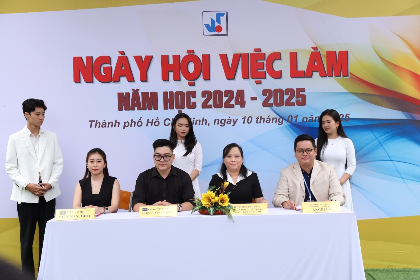 Tại Ngày hội việc làm, Trường Cao đẳng Văn hóa Nghệ thuật Thành phố Hồ Chí Minh đã tiến hành ký kết biên bản ghi nhớ hợp tác với nhiều đơn vị doanh nghiệp. Sự kiện này đánh dấu bước tiến quan trọng trong việc tăng cường kết nối giữa nhà trường, doanh nghiệp và sinh viên – giúp sinh viên dễ dàng tiếp cận môi trường làm việc thực tế, có thêm cơ hội thực tập, trải nghiệm và tìm kiếm việc làm đúng chuyên ngành sau khi tốt nghiệp. Cũng trong khuôn khổ ngày hội, các doanh nghiệp đã trực tiếp tư vấn định hướng nghề nghiệp cho hơn 200 sinh viên năm cuối đến từ các khoa Mỹ thuật, Âm nhạc, Du lịch, Sân khấu và Văn hóa.