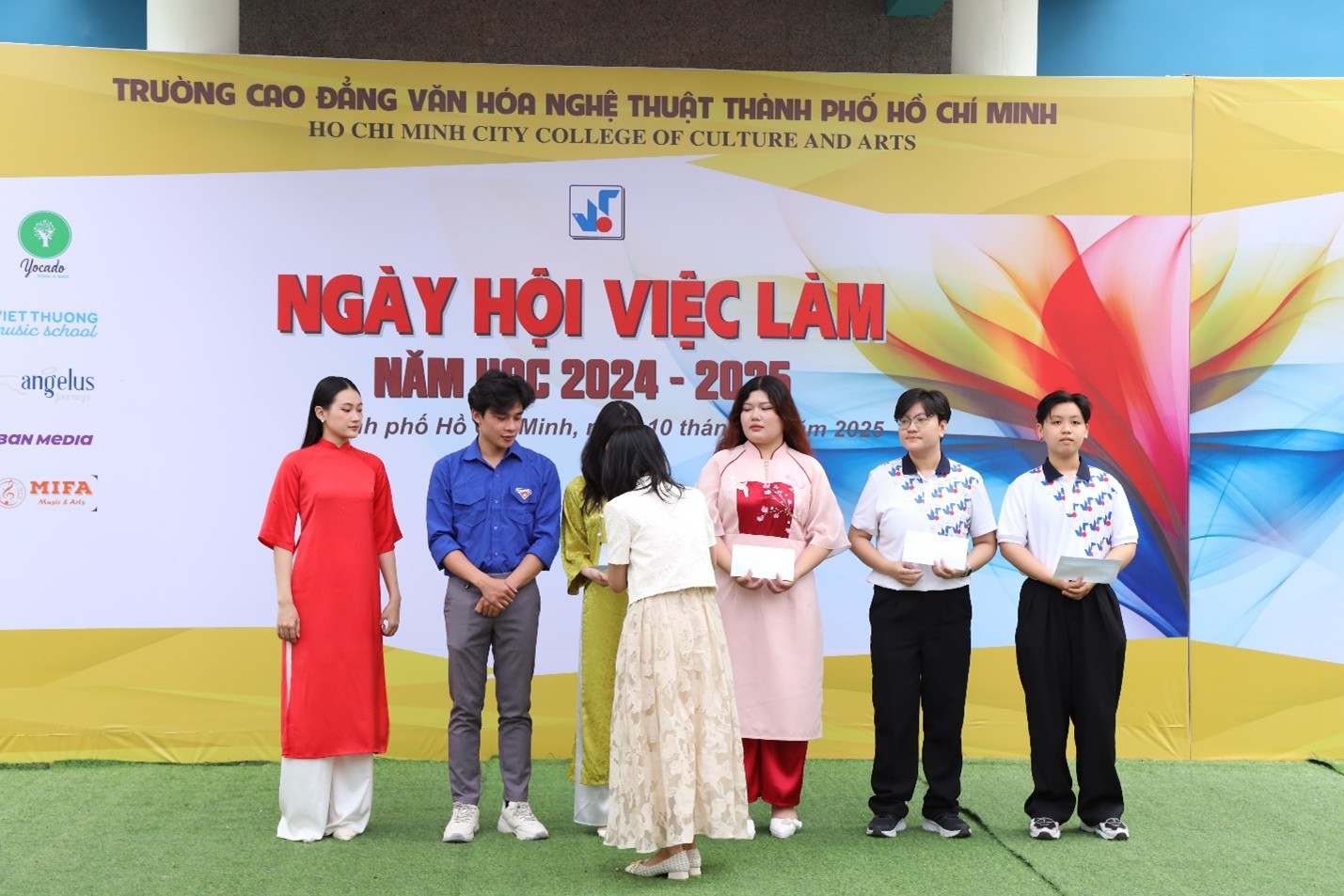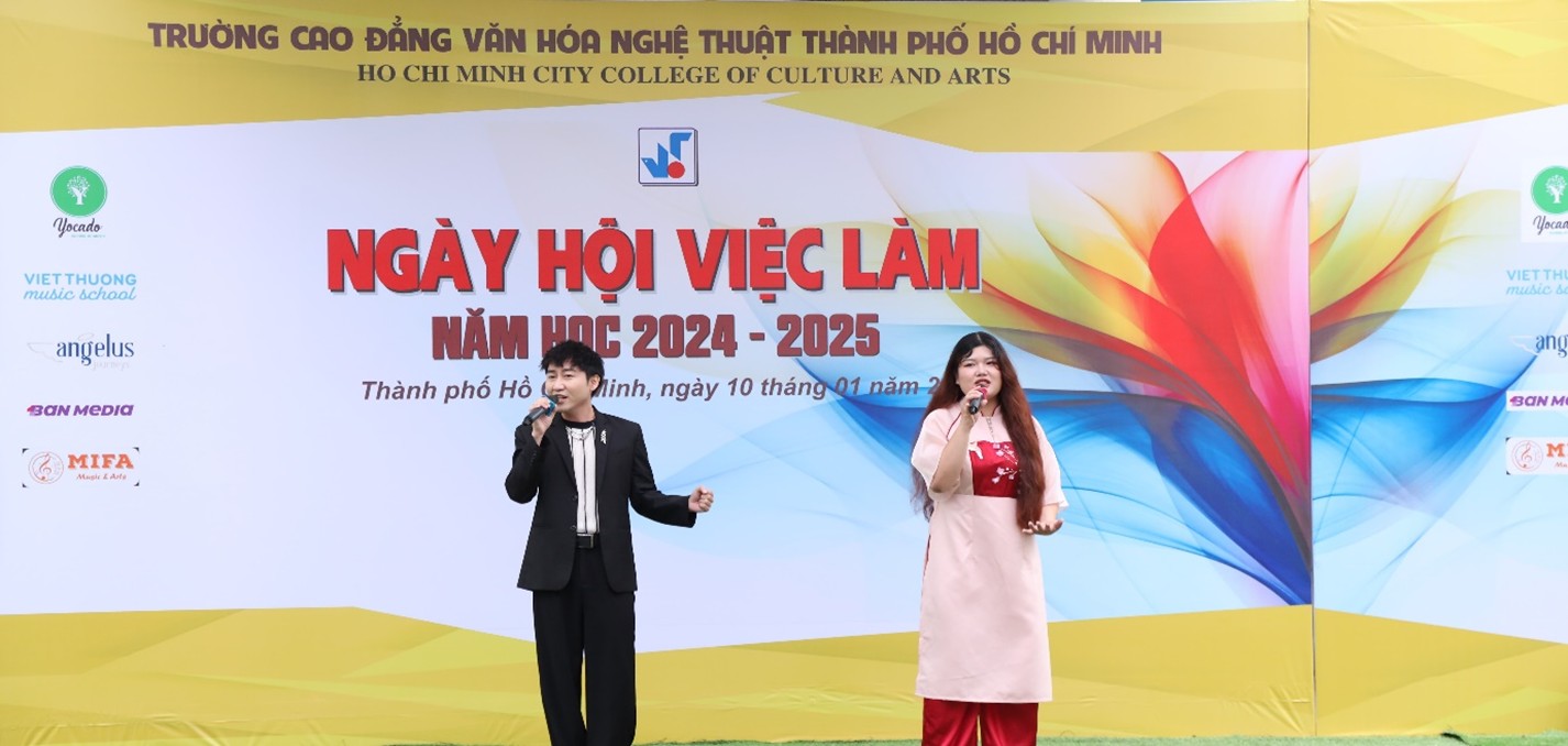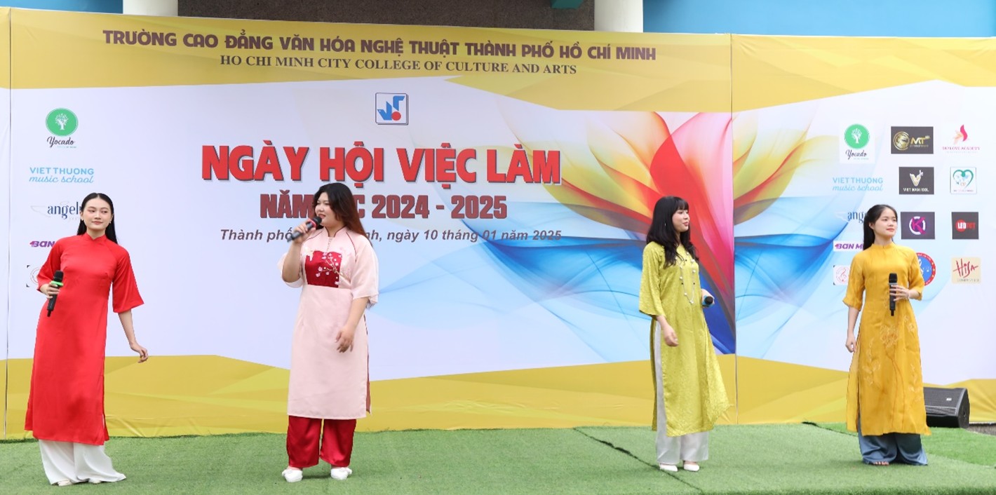 Căn cứ Thông tư số 14/2022/TT-BLĐTBXH ngày 30/08/2022 của Bộ Lao động Thương binh và Xã hội quy định về công tác tư vấn nghề nghiệp, việc làm và hỗ trợ học sinh, sinh viên khởi nghiệp trong các cơ sở giáo dục nghề nghiệp; Thực hiện kế hoạch năm học 2024 – 2025, nhằm đẩy mạnh hiệu quả công tác giới thiệu việc làm cho sinh viên tốt nghiệp, đồng thời thiết lập và duy trì mối quan hệ hợp tác giữa nhà trường với đơn vị tuyển dụng. Sáng thứ Sáu ngày 10 tháng 01 năm 2025, Trường Cao đẳng Văn hóa Nghệ thuật Thành phố Hồ Chí Minh đã tổ chức “Ngày hội việc làm” năm học 2024 – 2025 Chủ đề: Phỏng vấn thử – Thành công thật, đã thu hút sự tham gia của đông đảo sinh viên cùng nhiều đơn vị tuyển dụng, doanh nghiệp hoạt động trong các lĩnh vực Văn hóa, Nghệ thuật và Du lịch.
