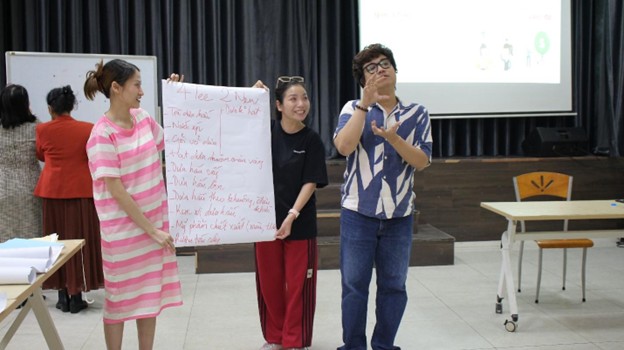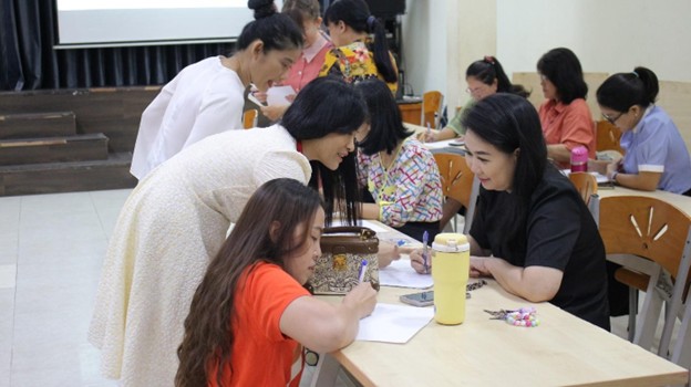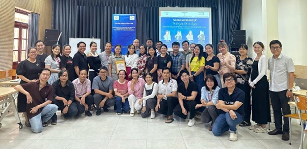 Không chỉ dừng lại ở kiến thức chuyên môn, chương trình còn tạo bầu không khí thân thiện, cởi mở thông qua các hoạt động nhóm và trò chơi gắn kết. Các thầy cô vừa học hỏi, trau dồi kiến thức mới mẻ, vừa có những phút giây thư giãn, giảm căng thẳng. Không khí lớp học sôi nổi, náo nhiệt nhưng vẫn giữ được sự nghiêm túc, chuyên nghiệp, thể hiện đúng tinh thần đổi mới sáng tạo.