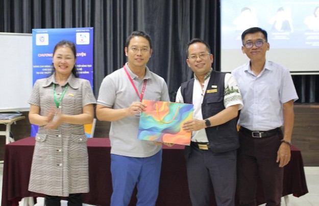 Các thầy cô CVN chụp ảnh lưu niệm cùng đại diện SIHUB trong lễ khai mạc chương trình huấn luyện.