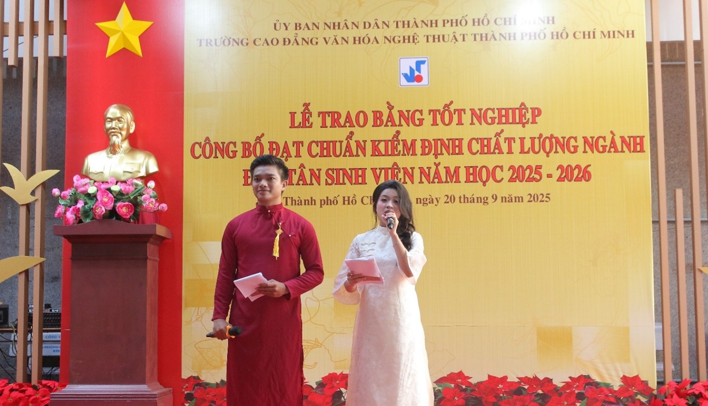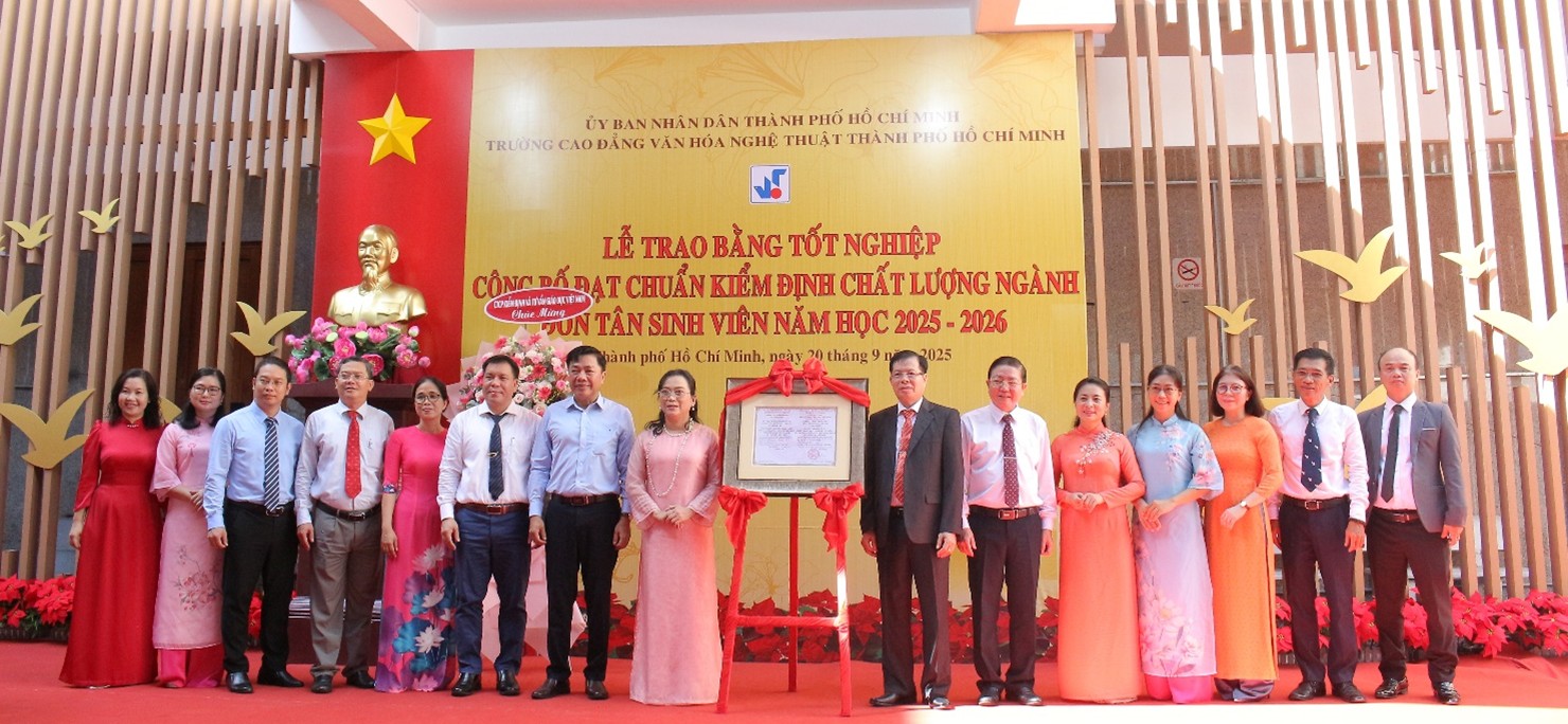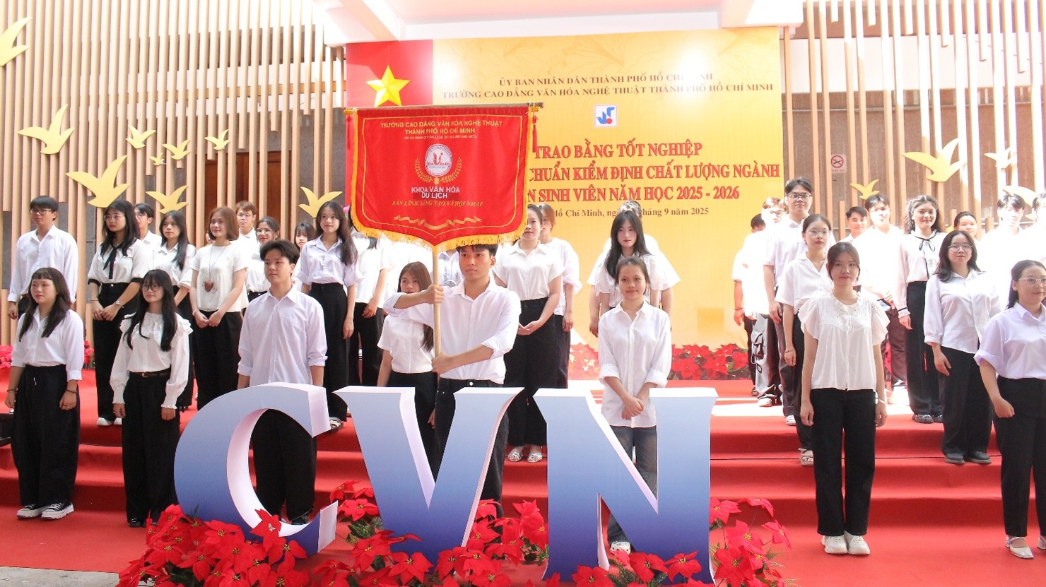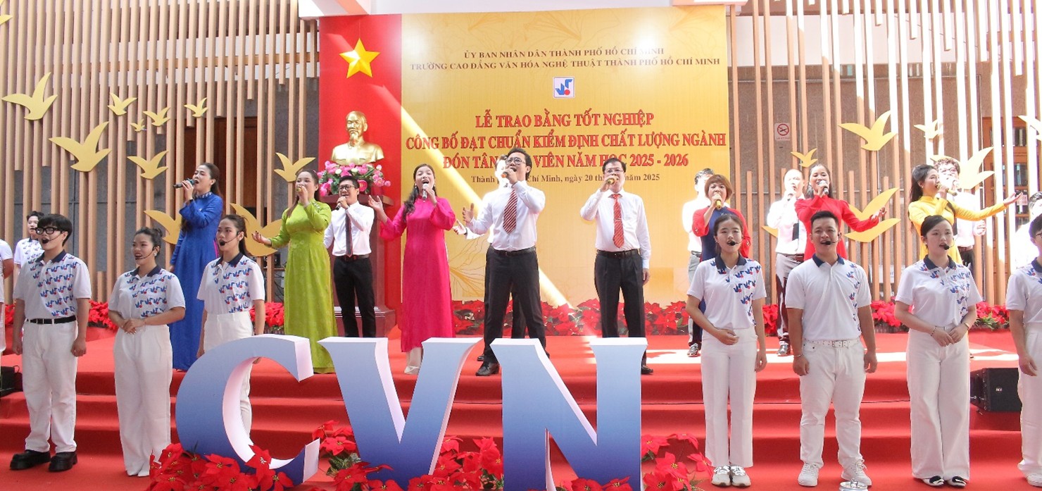 Sáng ngày 20/9/2025, Trường Cao đẳng Văn hóa Nghệ thuật TP. Hồ Chí Minh (CVN) đã long trọng tổ chức Lễ trao bằng tốt nghiệp – Công bố đạt chuẩn kiểm định chất lượng ngành Thanh nhạc – Đón tân sinh viên Khóa 31. Đây là sự kiện quan trọng, ghi dấu chặng đường học tập, rèn luyện của các Tân cử nhân, đồng thời mở ra hành trình mới cho thế hệ sinh viên Khóa 31 đầy nhiệt huyết và đam mê nghệ thuật.
