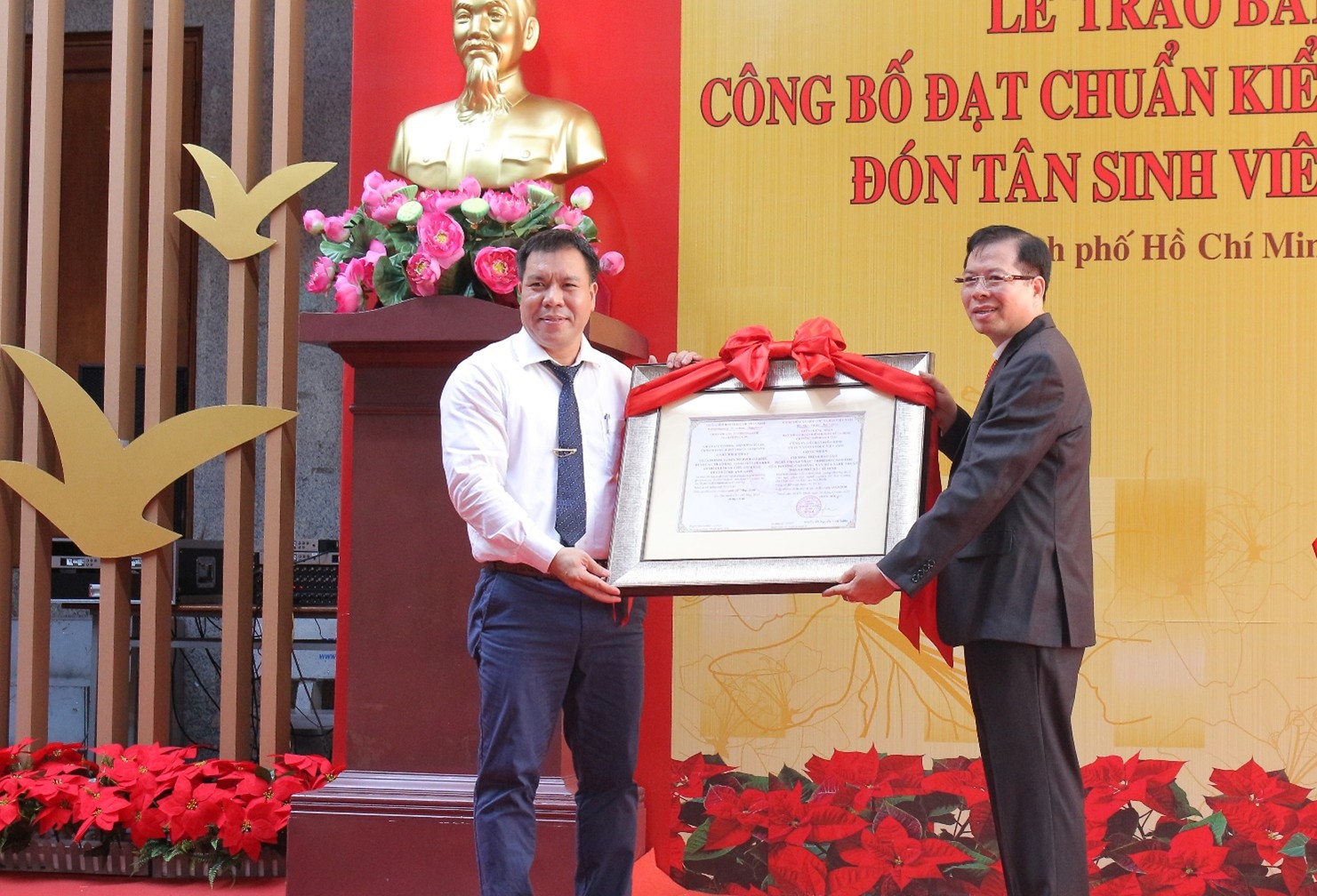 Một trong những điểm nhấn đặc biệt của buổi Lễ là việc công bố Quyết định và trao Chứng nhận đạt tiêu chuẩn kiểm định chất lượng chương trình đào tạo ngành Thanh nhạc. Đây là cột mốc quan trọng khẳng định uy tín, chất lượng đào tạo của Trường Cao đẳng Văn hóa Nghệ thuật TP.HCM, đồng thời mở ra nhiều cơ hội phát triển cho giảng viên và sinh viên trong lĩnh vực âm nhạc.