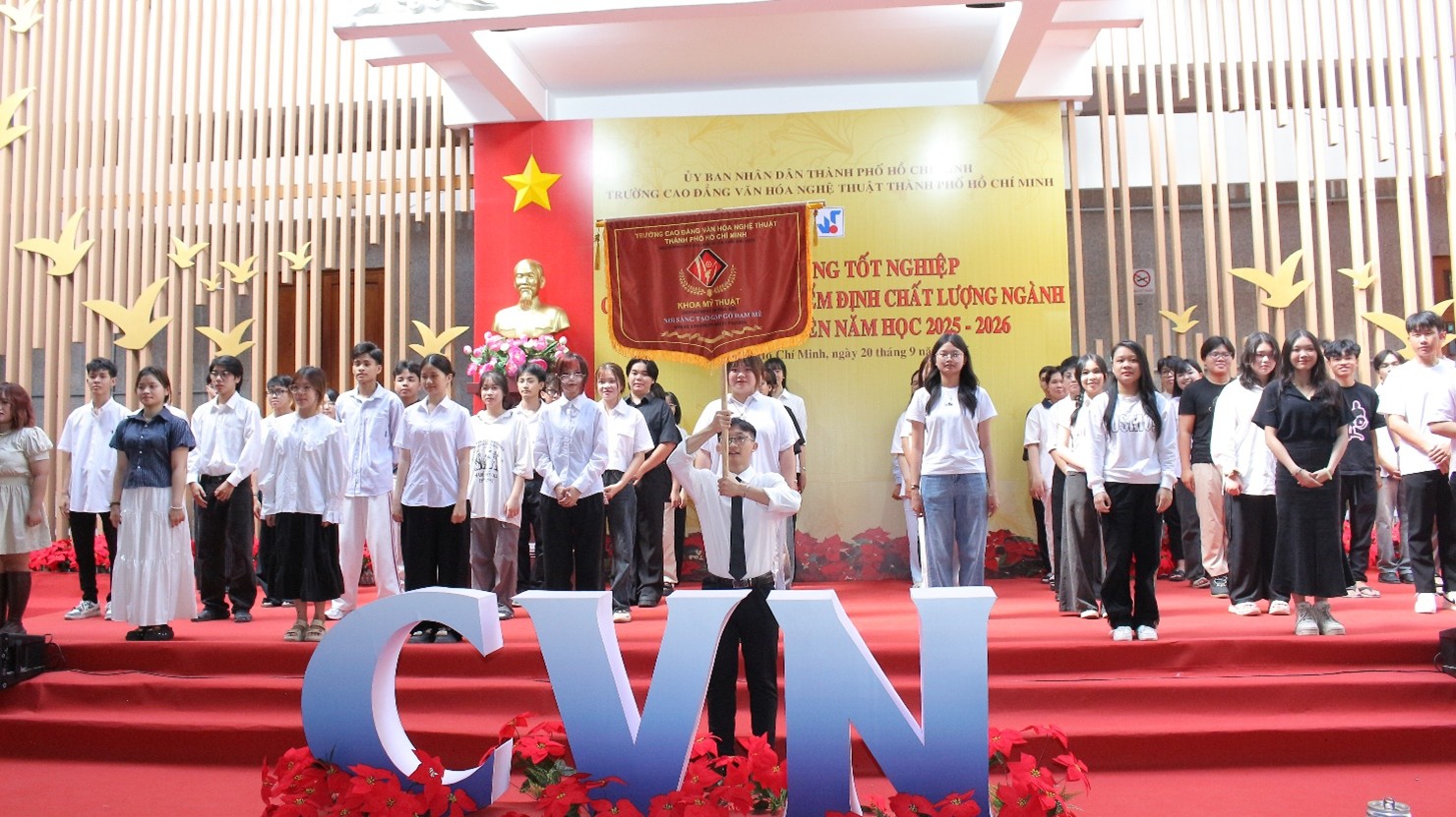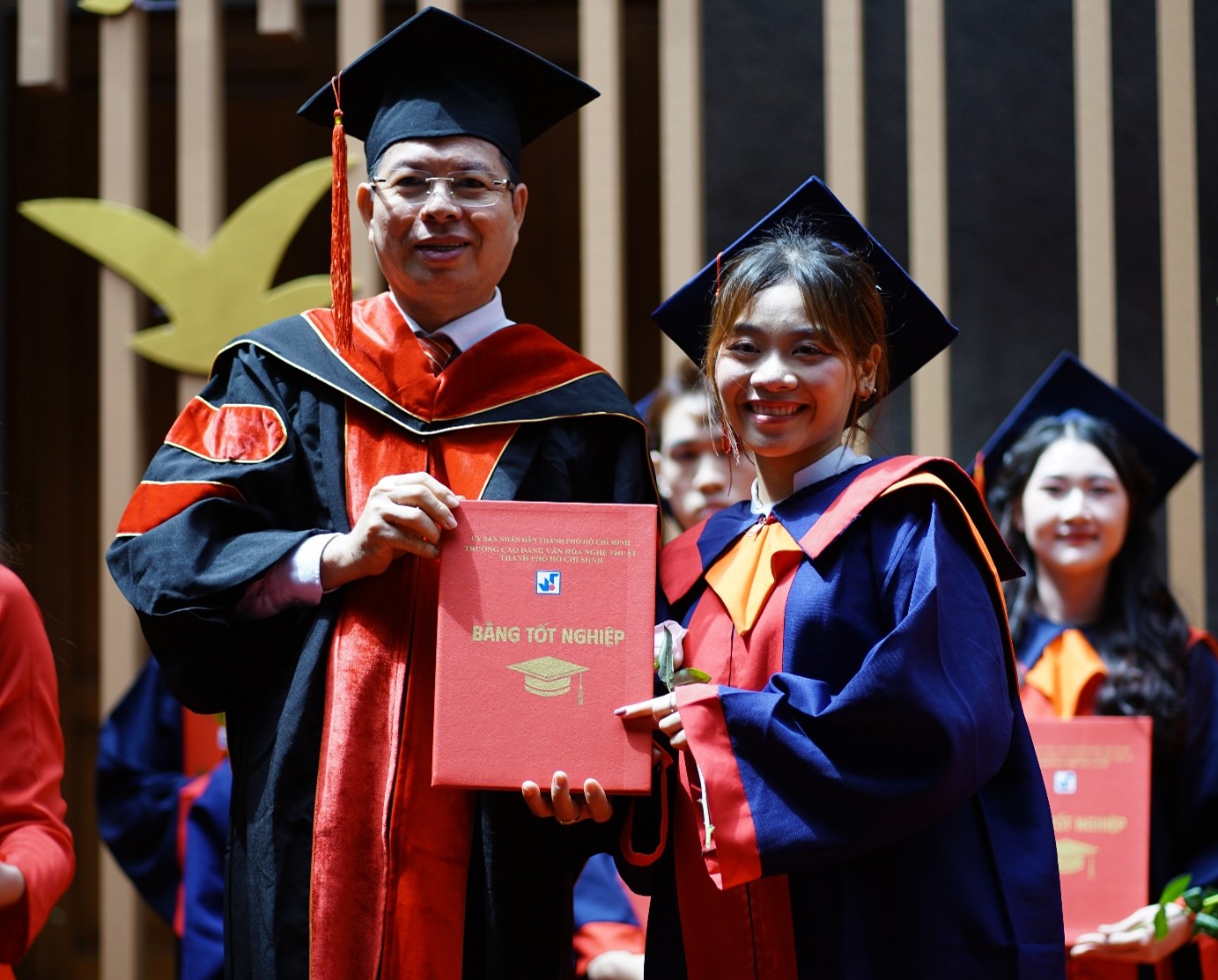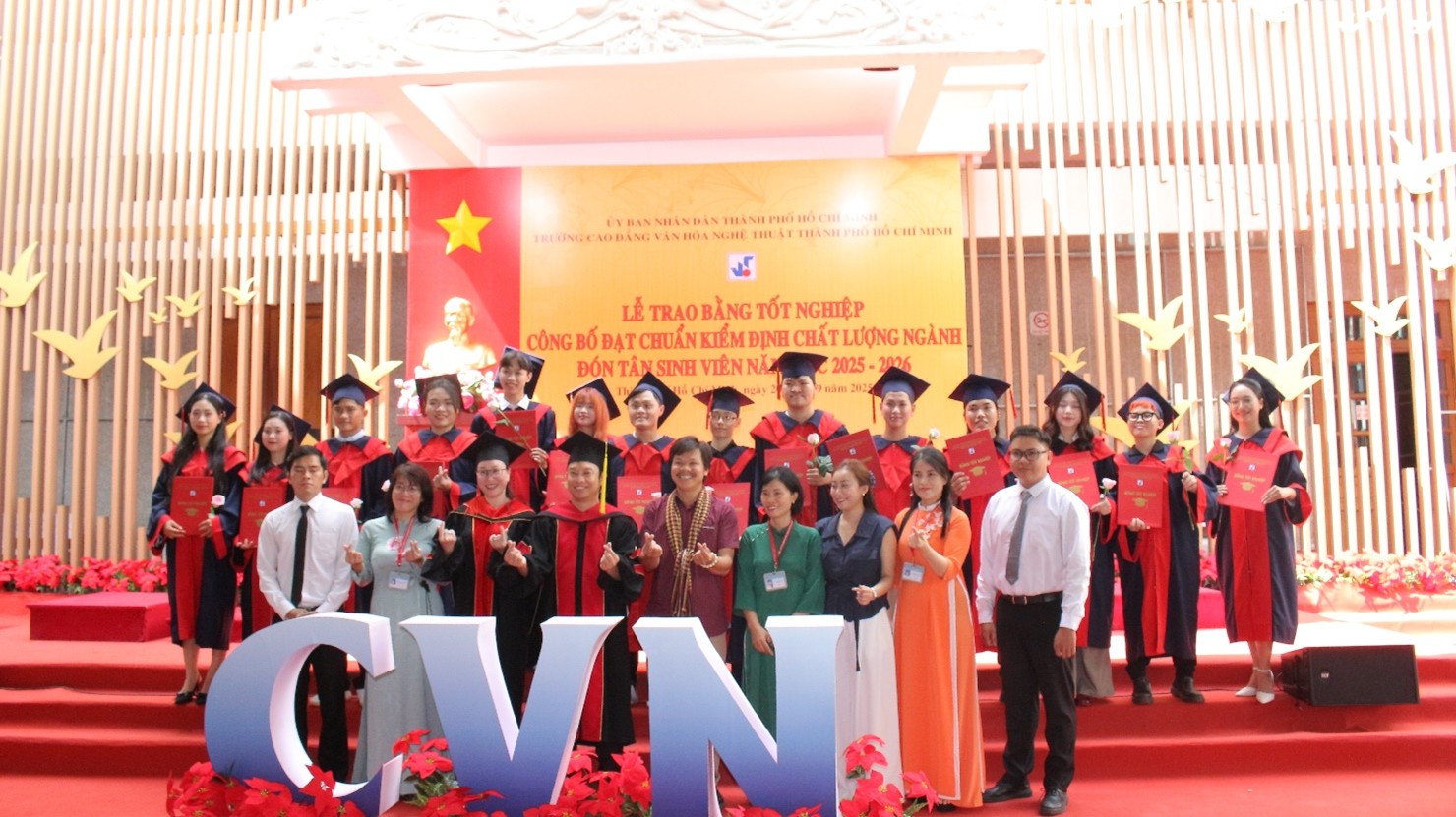 Xin chúc mừng các Tân Cử nhân Trường Cao đẳng Văn hóa Nghệ thuật TP.HCM đã chính thức hoàn tất chương trình đào tạo! Với nền tảng kiến thức vững vàng, kỹ năng thực tiễn và khả năng hội nhập quốc tế, các Tân Cử nhân sẵn sàng bước vào con đường cống hiến, nghiên cứu và sáng tạo trong lĩnh vực văn hóa – nghệ thuật. Tốt nghiệp hôm nay không chỉ là minh chứng cho những nỗ lực và thành quả đã đạt được, mà còn mở ra một hành trình mới, nơi các em tiếp nối truyền thống uy tín của Nhà trường, góp phần xây dựng và phát triển văn hóa – nghệ thuật của đất nước. Sự kiện này cũng là lời khẳng định cho sự cam kết không ngừng của Trường Cao đẳng Văn hóa Nghệ thuật TP.HCM trong việc nâng cao chất lượng đào tạo, củng cố uy tín và vị thế của Nhà trường trong giáo dục và đào tạo nghề nghiệp.