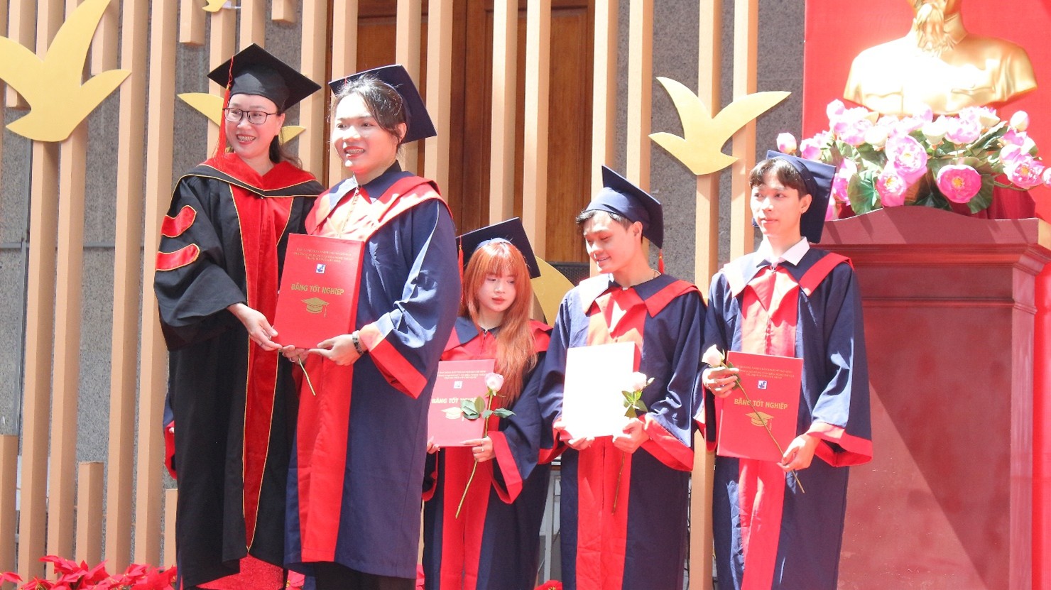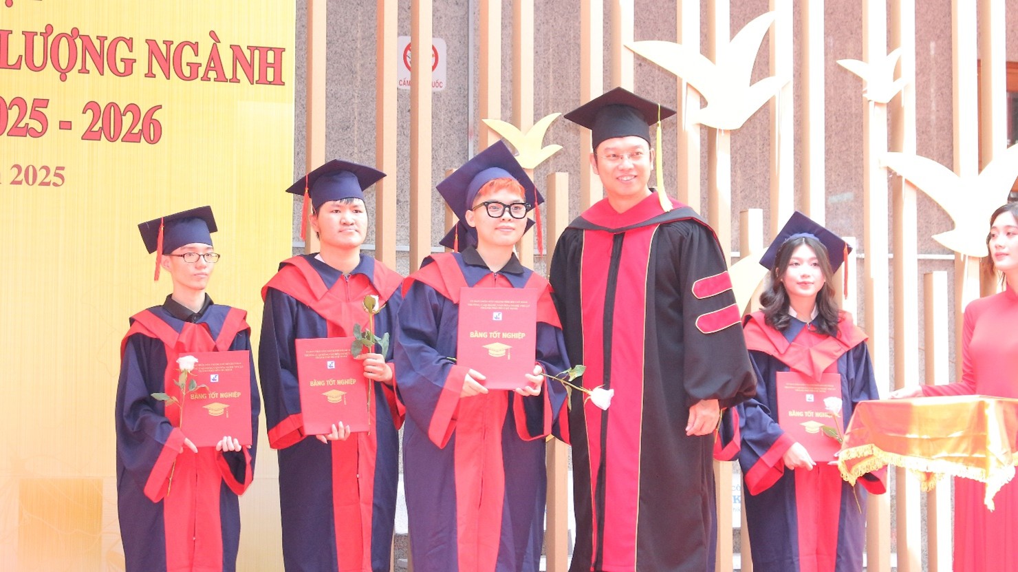 Buổi lễ ghi nhận nỗ lực học tập, rèn luyện của sinh viên bằng việc công bố quyết định khen thưởng các sinh viên tốt nghiệp Xuất sắc năm 2025; trao Giấy khen Hoàn thành xuất sắc nhiệm vụ cho các Đoàn viên tiêu biểu trong Chiến dịch Mùa Hè Xanh 2025; và trang trọng thực hiện nghi thức trao Bằng tốt nghiệp cho sinh viên, đánh dấu bước ngoặt quan trọng trên con đường sự nghiệp của các Tân cử nhân.