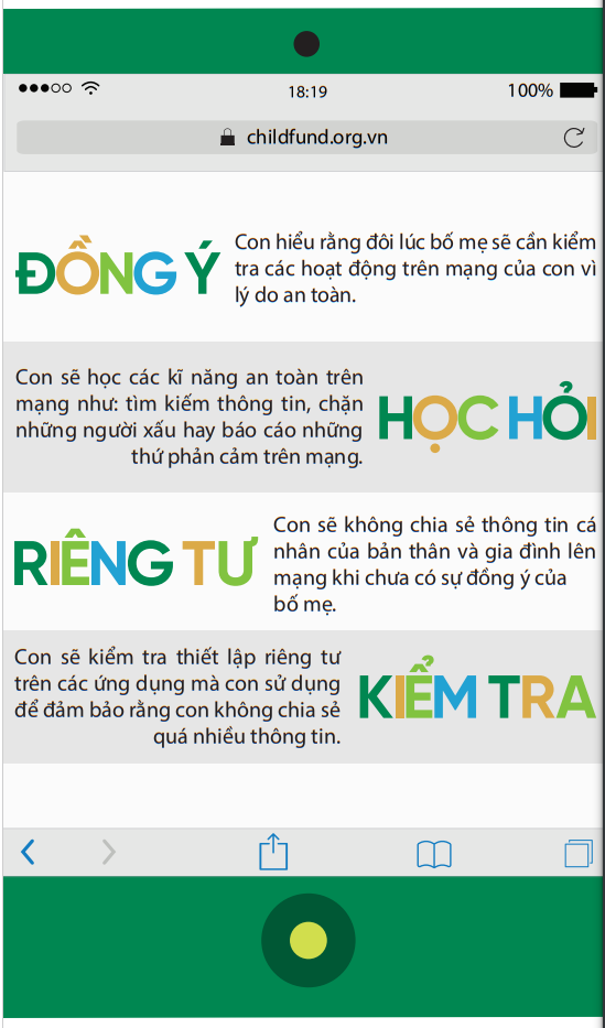 Việc trao đổi, thoả thuận giữa cha mẹ và con cái về các nguyên tắc sử dụng Internet an toàn từ khi trẻ còn nhỏ có ý nghĩa quan trọng trong việc hỗ trợ trẻ phòng tránh và ứng phó với những rủi ro trên môi trường mạng, đồng thời duy trì mối quan hệ tôn trọng và tin tưởng giữa cha mẹ và con cái.