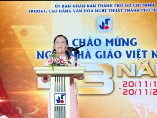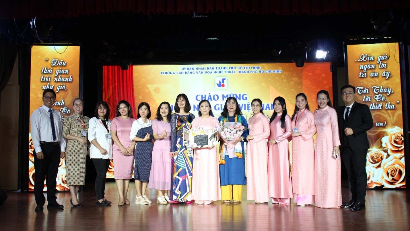 Sáng nay, ngày 20/11/2025, Trường Cao đẳng Văn hóa Nghệ thuật TP.HCM tổ chức chương trình kỷ niệm 43 năm Ngày Nhà giáo Việt Nam. Buổi lễ có sự tham dự của cô Trương Nguyễn Ánh Nga – Nguyên Hiệu trưởng; cô Nguyễn Thị Phương Hoa – Giảng viên chính; lãnh đạo Nhà trường; đại diện các Phòng, Khoa cùng toàn thể cán bộ viên chức, giảng viên và sinh viên.