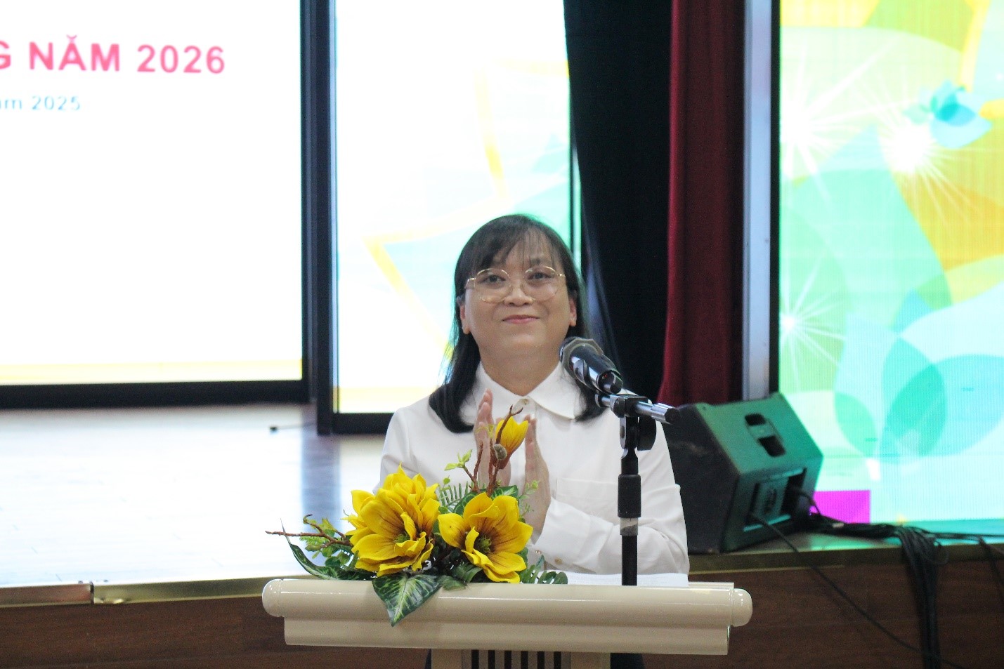 Phát biểu chỉ đạo, ThS. Hồ Ngọc Minh – Bí thư Chi bộ, Quyền Hiệu trưởng Trường Cao đẳng Văn hóa Nghệ thuật TP.HCM ghi nhận kết quả thực hiện nhiệm vụ năm 2025 của nhà trường, đồng thời yêu cầu các đơn vị tiếp tục phát huy những nội dung đã đạt được, tập trung khắc phục những hạn chế, khó khăn trong quá trình triển khai nhiệm vụ. Trên cơ sở yêu cầu đổi mới giáo dục nghề nghiệp trong giai đoạn hiện nay, Cô đề nghị các Phòng, Khoa và đơn vị trực thuộc nâng cao nhận thức về vai trò, vị trí của Trường Cao đẳng Văn hóa Nghệ thuật TP.HCM trong hệ thống đào tạo nguồn nhân lực văn hóa nghệ thuật; tiếp tục rà soát, điều chỉnh nội dung, chương trình đào tạo phù hợp với đặc thù ngành nghề và yêu cầu thực tiễn; đổi mới phương pháp giảng dạy theo hướng nâng cao hiệu quả đào tạo, gắn lý thuyết với thực hành. Bên cạnh đó, nhà trường cần chú trọng công tác xây dựng đội ngũ viên chức, giảng viên có phẩm chất chính trị, đạo đức nghề nghiệp và năng lực chuyên môn đáp ứng yêu cầu nhiệm vụ; tăng cường kỷ cương, kỷ luật hành chính; đẩy mạnh ứng dụng công nghệ thông tin trong quản lý, giảng dạy và từng bước triển khai các giải pháp chuyển đổi số, góp phần nâng cao chất lượng đào tạo và hiệu quả hoạt động chung của nhà trường trong năm 2026.