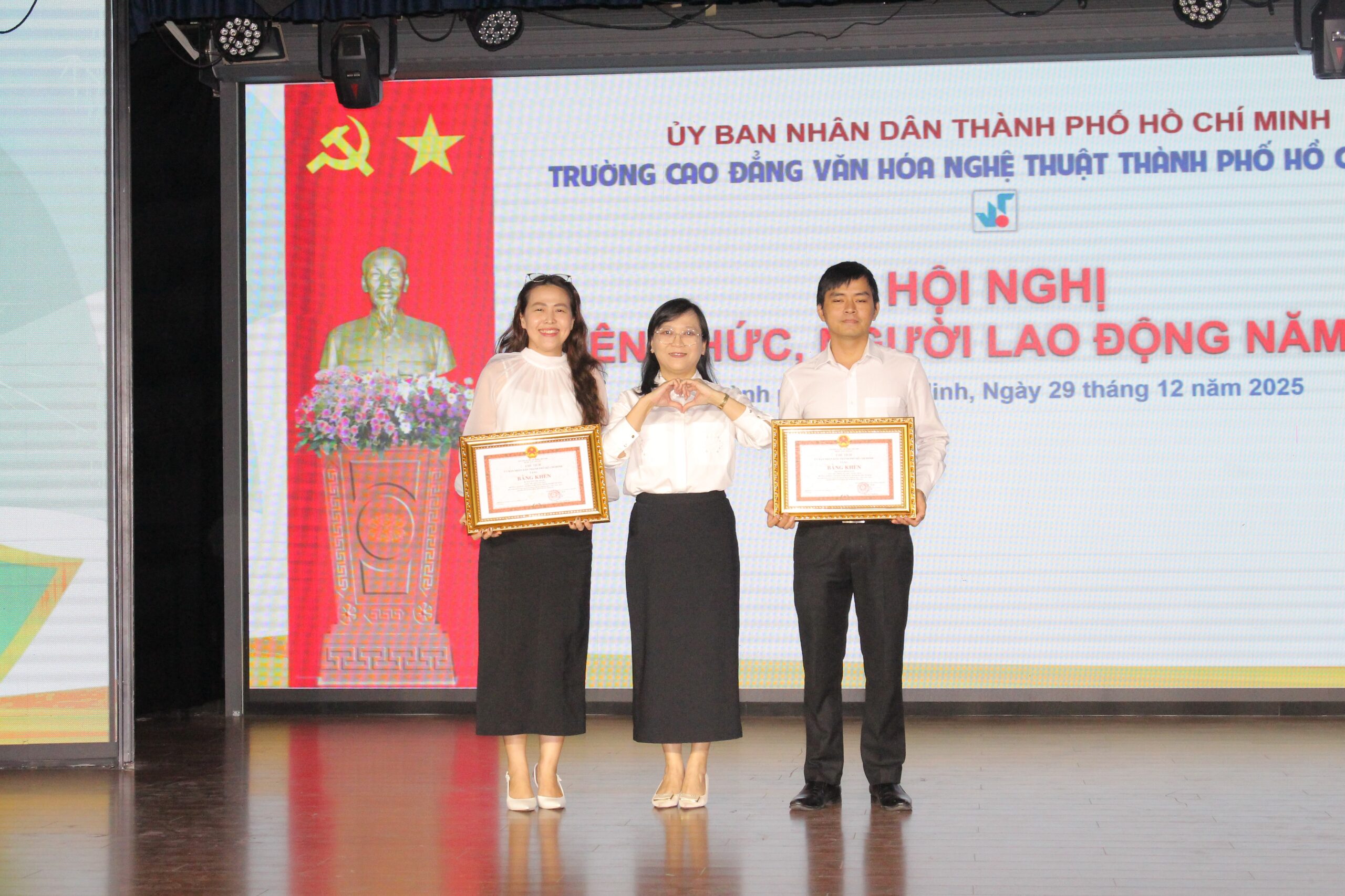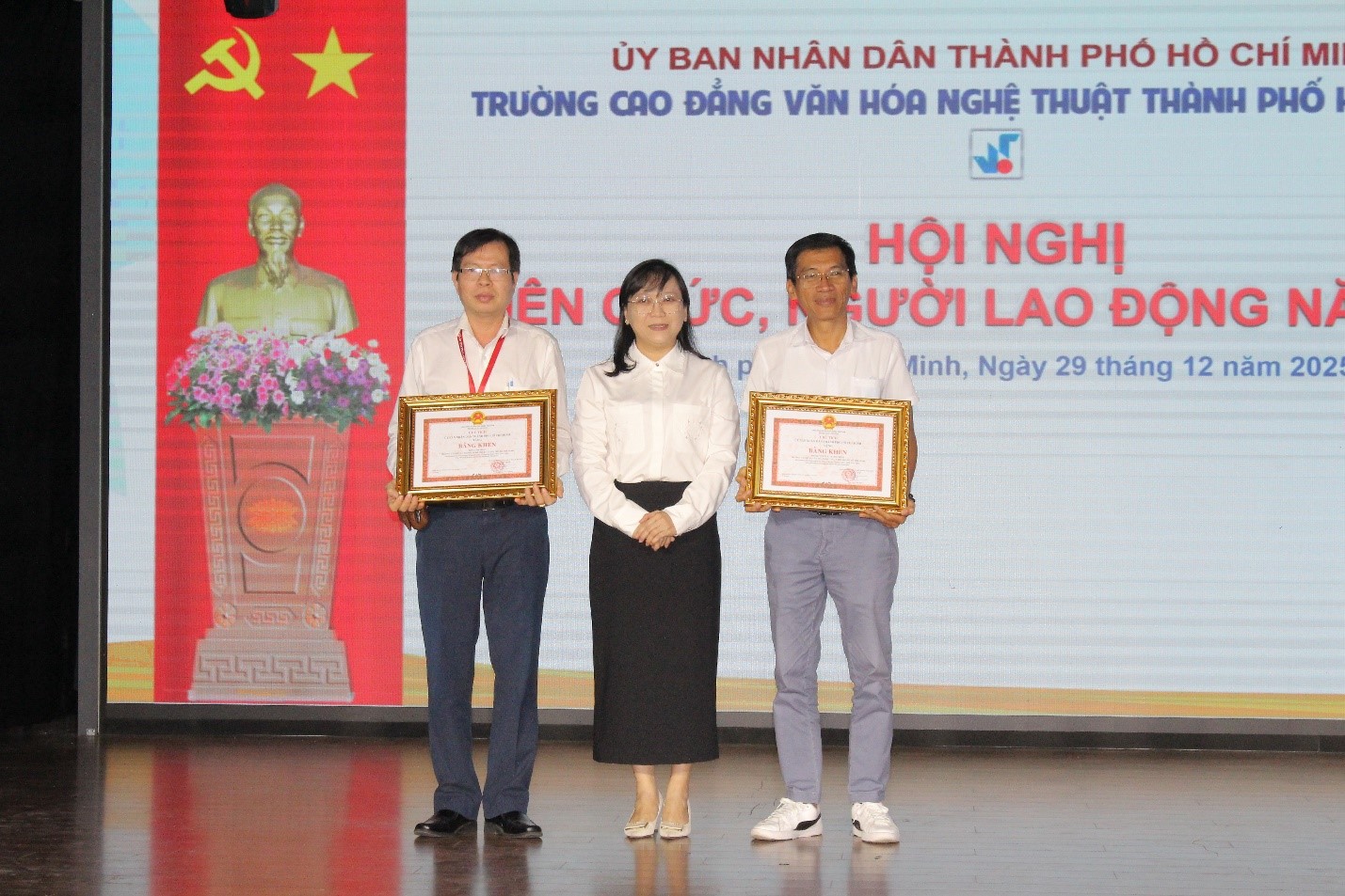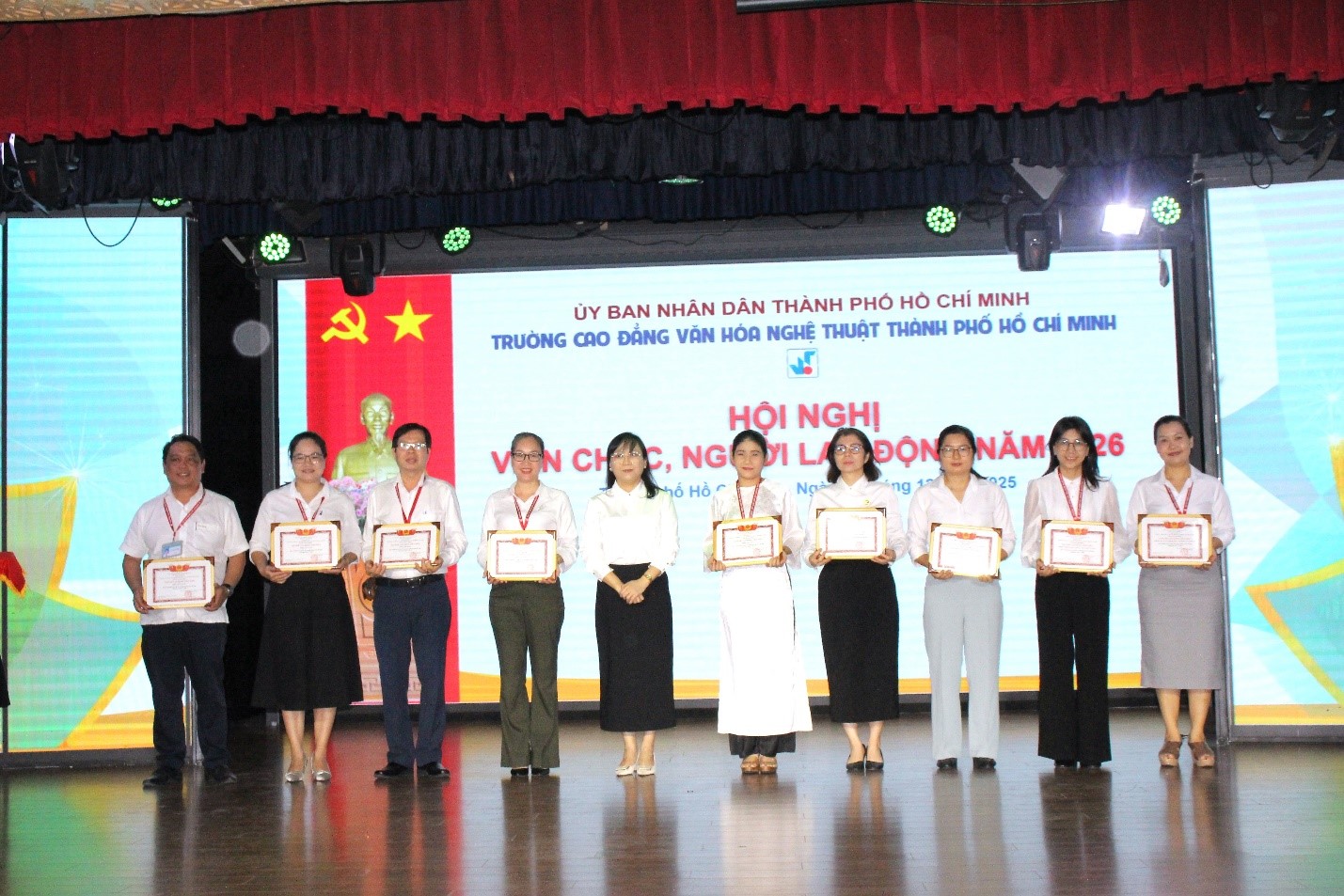 Sáng 29/12/2025, Trường Cao đẳng Văn hóa Nghệ thuật TP.HCM tổ chức Hội nghị viên chức, người lao động năm 2026 nhằm đánh giá kết quả thực hiện nhiệm vụ năm 2025 và thống nhất phương hướng, nhiệm vụ năm học 2025 – 2026 với chủ đề “Đổi mới, củng cố và nâng cao chất lượng giáo dục và đào tạo”.