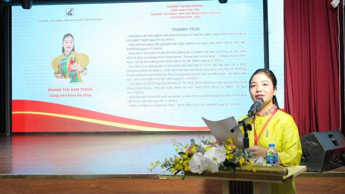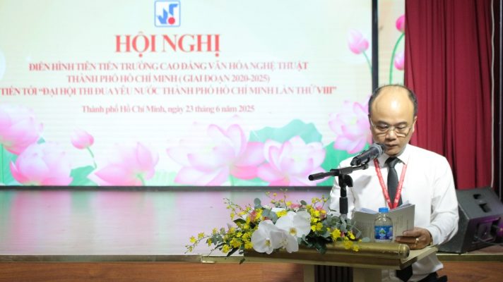 Sáng thứ Hai, ngày 23/06/2025, Trường Cao đẳng Văn hóa Nghệ thuật TP.HCM đã tổ chức thành công Hội nghị “Điển hình Tiên tiến năm 2025” ( giai đoạn 2020-2025) ” tại Hội trường B, một sự kiện có ý nghĩa đặc biệt trong hành trình phát triển của Trường, nhằm nhìn nhận những thành tựu nổi bật giai đoạn 2020 – 2025 trong công tác thi đua yêu nước và công tác khen thưởng của nhà trường trong suốt 5 năm qua. Hội nghị không chỉ là dịp để đánh giá kết quả phong trào thi đua mà còn là bước tiến hướng tới Đại hội thi đua yêu nước TP.Hồ Chí Minh lần thứ VIII vào năm 2025 và dấu mốc 50 năm thành lập Trường (1975 – 2025). Hội nghị được tổ chức trang trọng, tiết kiệm, thiết thực, mang ý nghĩa tôn vinh và giáo dục truyền thống, chào mừng các ngày lễ lớn năm 2025.