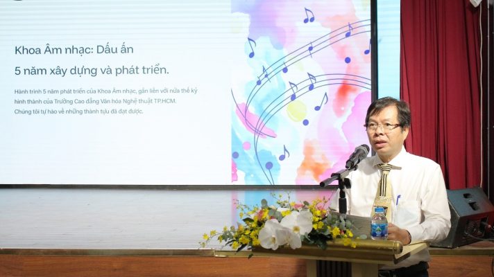 ThS. Lâm Đình Thuận – Trưởng khoa Âm nhạc đại diện Khoa báo cáo
